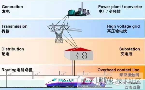 一句话简述就是:牵引变电所给架空接触线提供电能,高速列车将架空接触线的电能取回车内,驱动变频电机使列车运转。下面分三点详细解释这三个分句。 1.牵引变电所